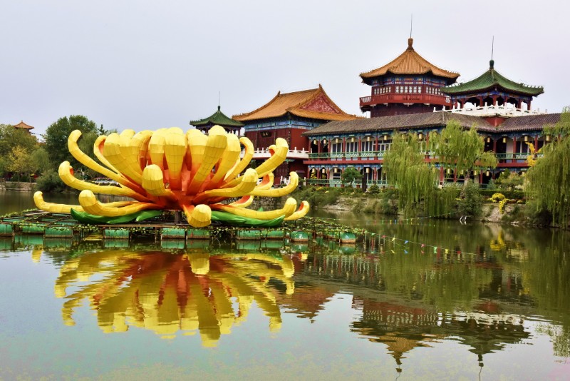 8点钟,公交车到达清明上河园。掏出相机,在清明上河园广场拍了几张,随即过马路进入中国翰园,从中国翰园转到天波杨府,从天波杨府转到龙亭。边走边拍。